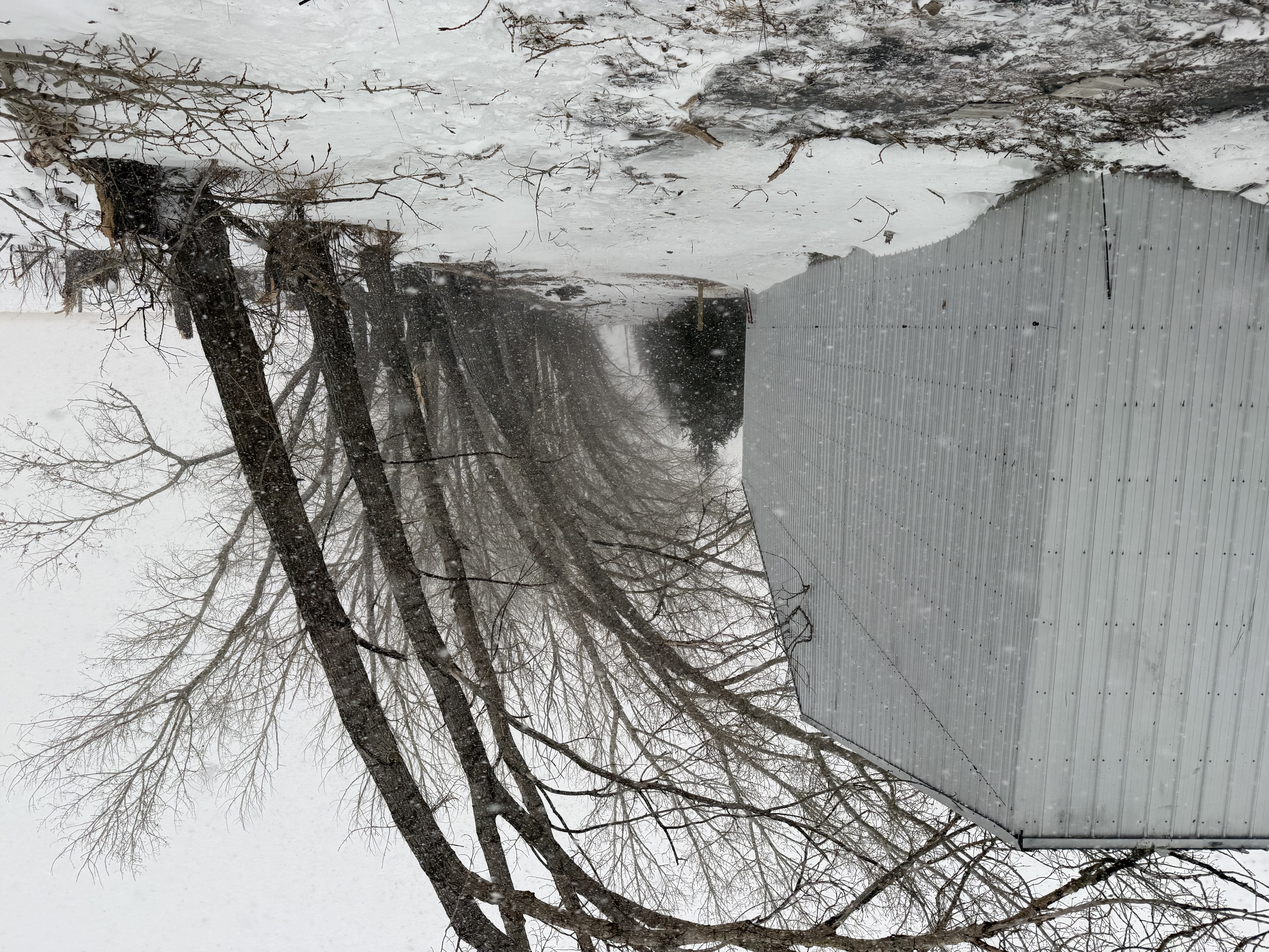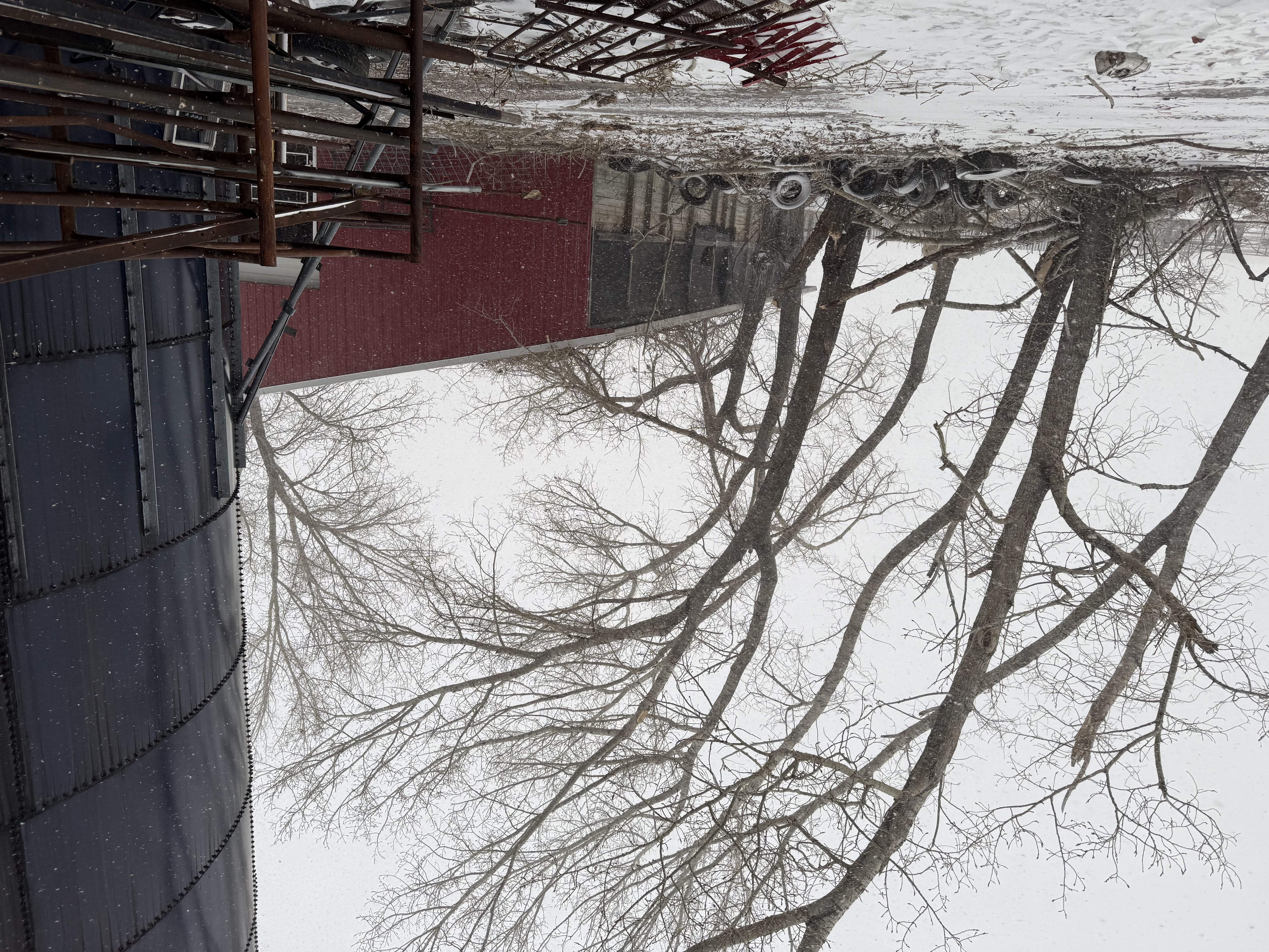 Specialized winter tree removal and property edge clearing completed using equipment-assisted handling for larger trees, tighter work areas, and cleanup near farm structures. These photos show practical Alberta tree removal and shelterbelt clearing work in real winter conditions.